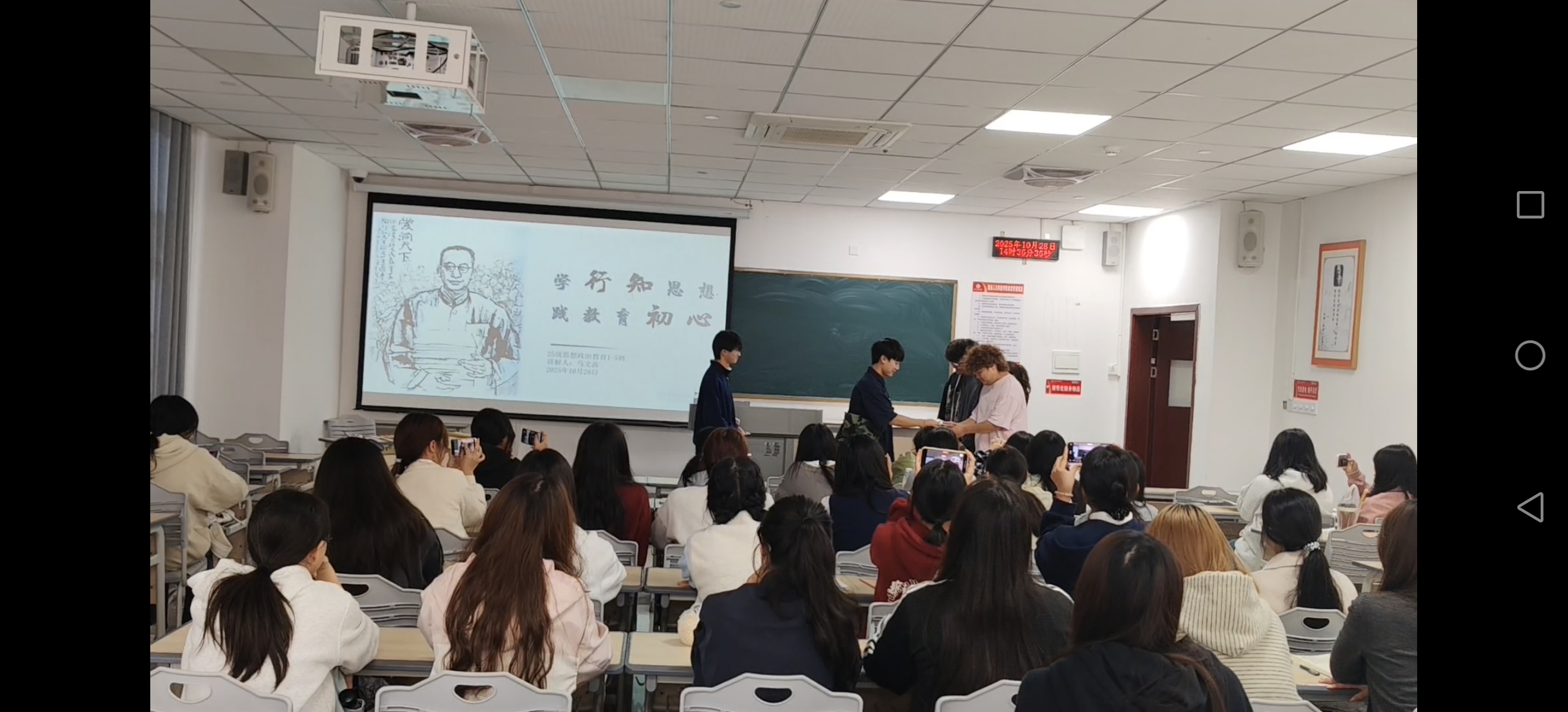 在互动分享环节,大家结合未来思政教育工作设想,畅谈对陶行知教育理念的践行计划。有的同学提出,未来将在课堂中融入社会热点案例,让思政知识与生活紧密结合;有的则表示,会关注班级里不同性格的学生,通过个性化谈心谈话,践行“尊重与关爱”的教育原则。真实的想法分享,让陶行知理念从理论走向了具体的实践构想。