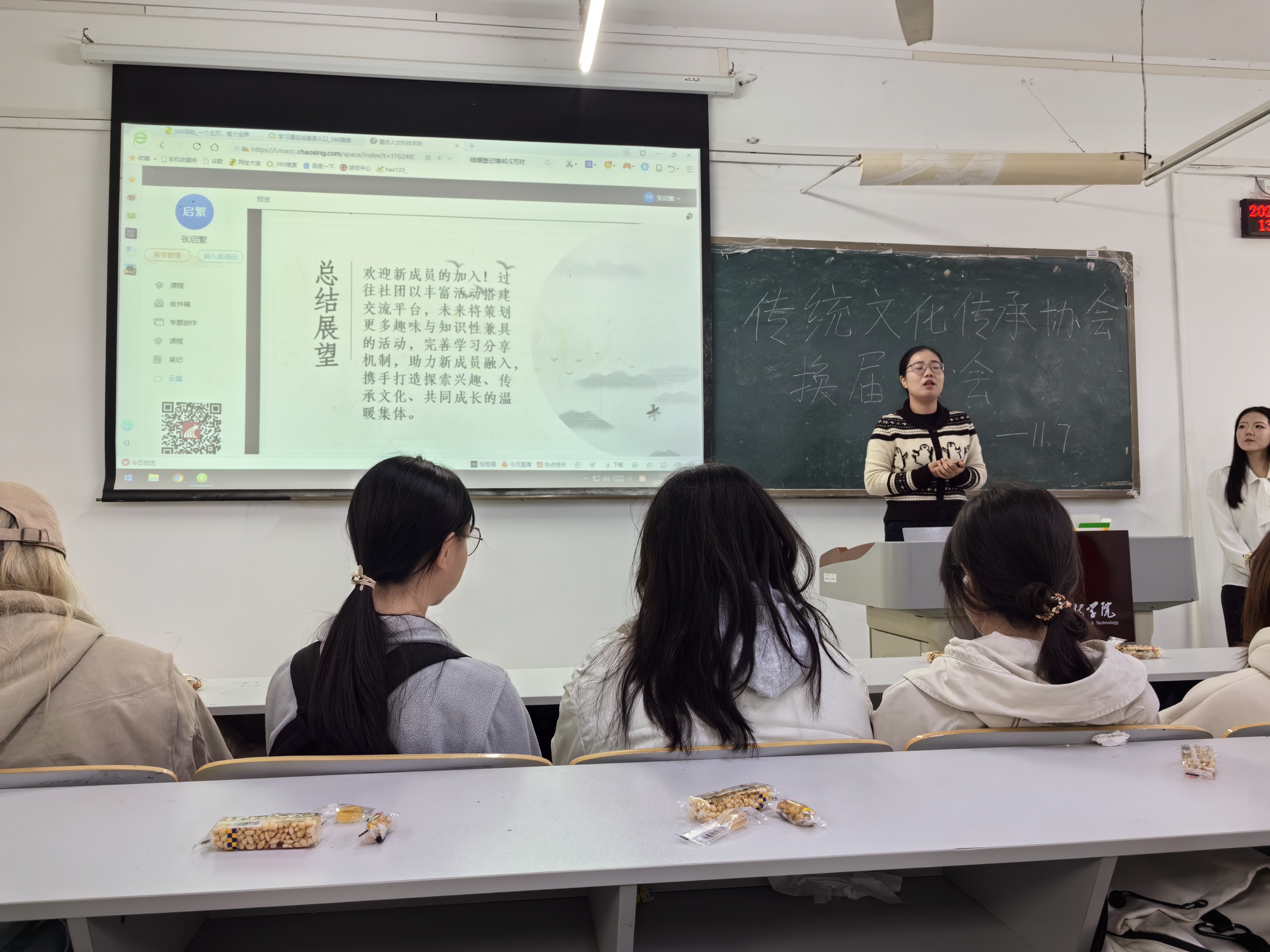 本次换届大会既是过往的总结,更是新程的序章。传统文化传承协会将以此次交接为起点,继续做传统文化的“青春传声筒”,在校园里播撒文化传承的种子。