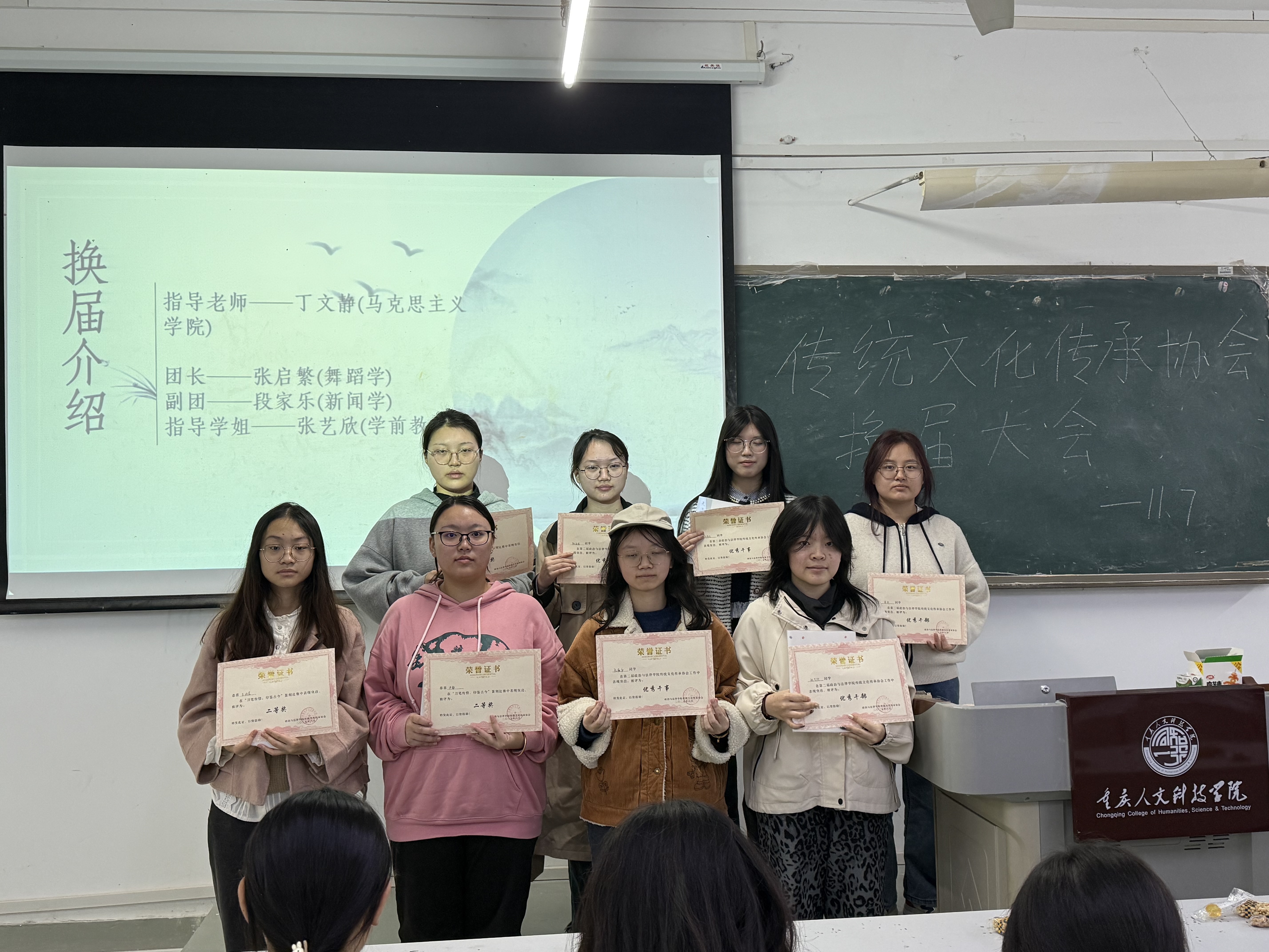 会上,指导老师丁文静首先肯定了社团往届的付出,并为离任骨干颁发荣誉证书。现场快门定格下成员们手持证书的合影,笑意里满是对文化传承的热忱。