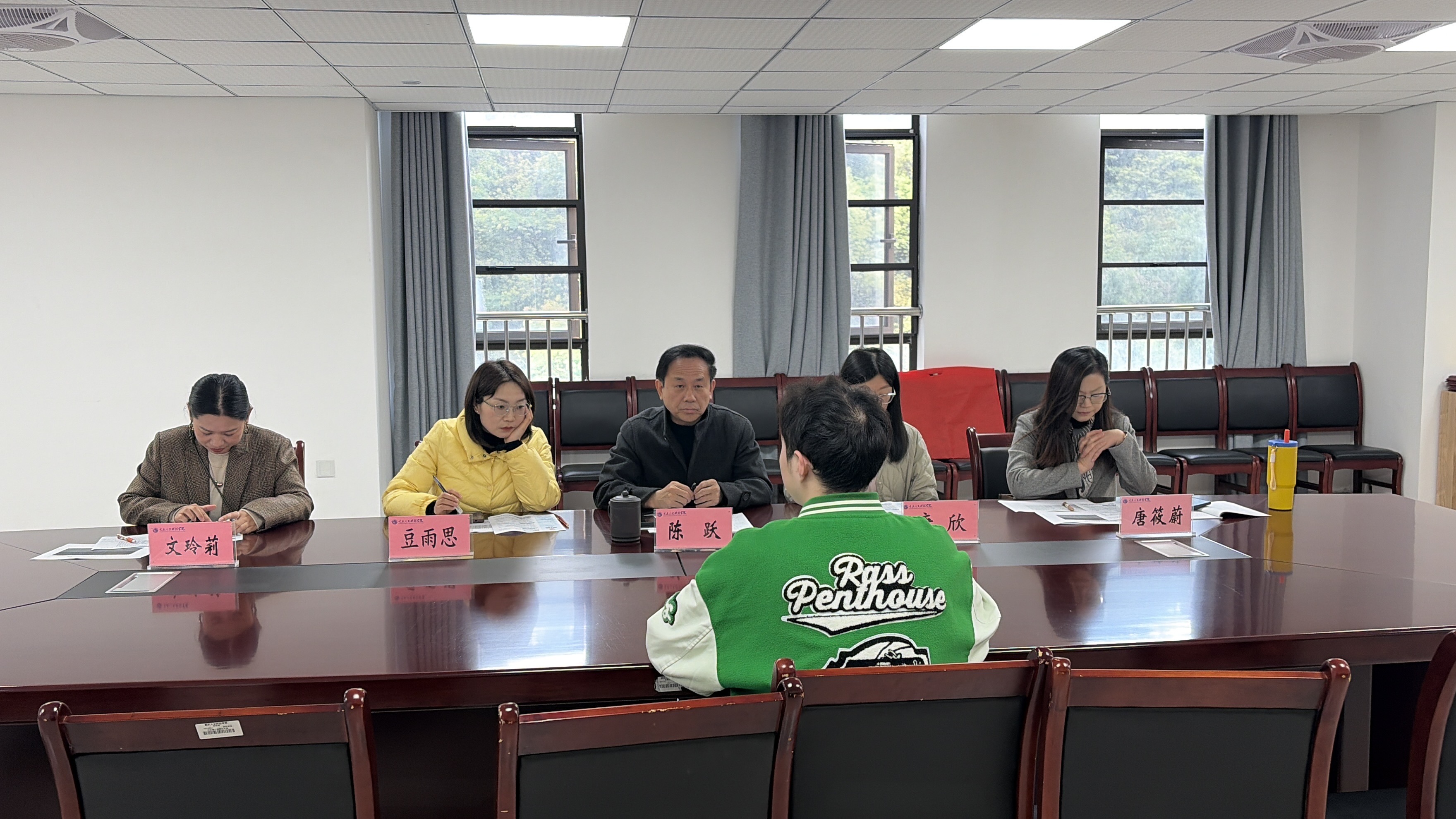 在模拟面试指导环节中,教师们结合学生报考方向和复试表现开展分类指导、精准施策。第一组围绕专业知识储备、面试心态调适、答题逻辑表达等方面进行细致点评,提醒学生端正备考态度、增强复试信心,既要夯实专业基础,也要注重对学科前沿动态和报考院校导师研究方向的了解,努力做到准备充分、表达准确、回答有据。