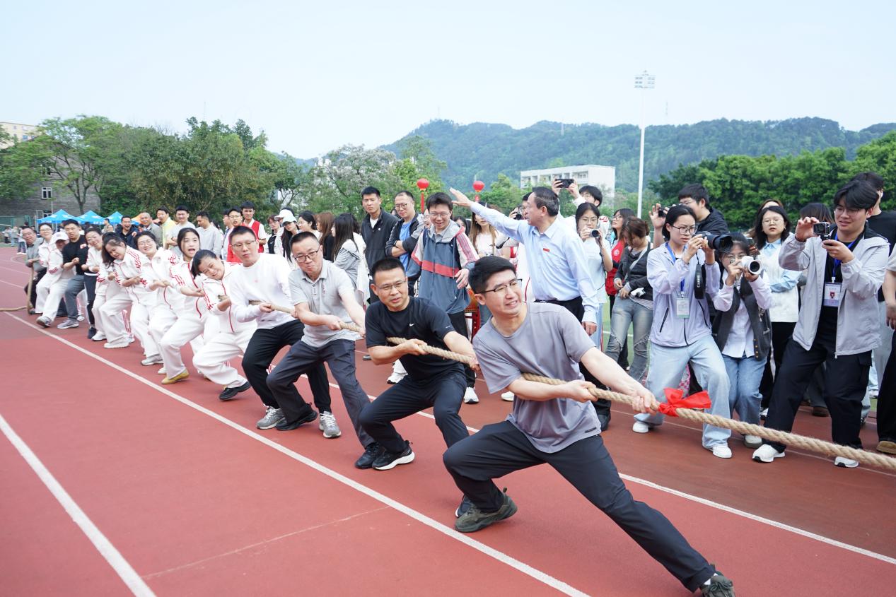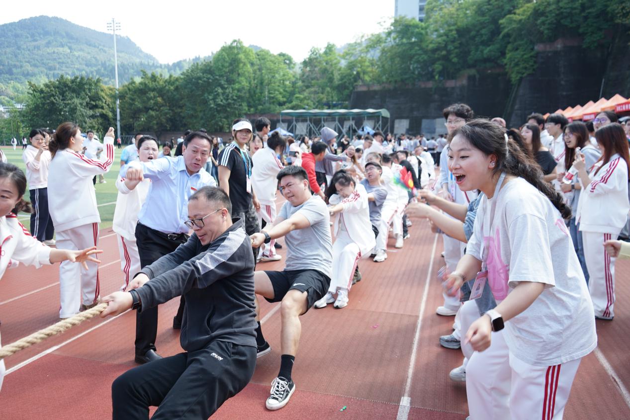 本次教师团体拔河赛分两个阶段进行,4 月 9 日上午 9:50,赛事第一阶段正式打响。赛场上,学院参赛教师团结一心、全力以赴,以饱满的竞技状态投入比拼,大家心往一处想、劲往一处使,凭借默契配合与顽强拼搏,成功从第一阶段比赛中突围,顺利晋级赛事第二阶段角逐。场边,学院同学们自发组成啦啦队,为参赛教师呐喊助威、加油鼓劲,热烈的喝彩声此起彼伏。